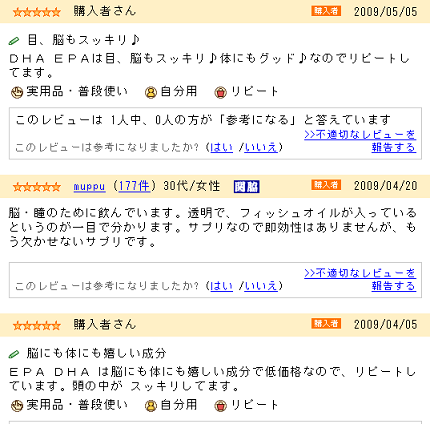 DHAの口コミ